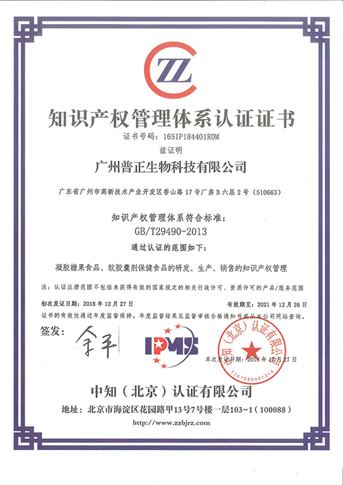 2018年,酵母富鋅凝膠糖果等十二款產品被認定為高新技術產品;榮獲CBME“服務十年獎”;12月27日通過知識產權管理體系認證;