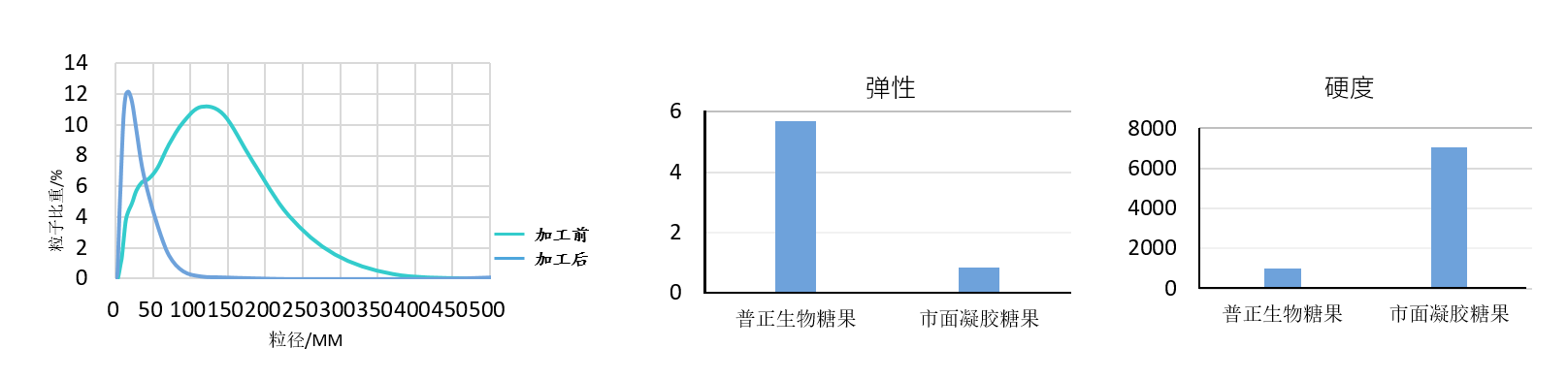 (一)對內容物進行精細化加工,使內容物粒徑從數百微米到數十微米,凝膠糖果咀嚼起來口感更細膩軟糯。