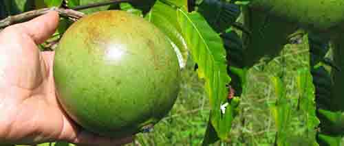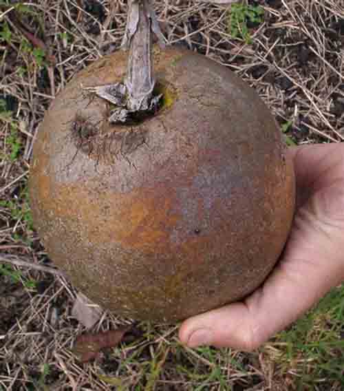 寶樂果粉取自寶樂果,也叫博羅霍,西班牙語為Borojo。它是一種生長在南美洲厄瓜多爾和哥倫比亞熱帶雨林地區的水果。看樣子么,其貌不揚,和番石榴差不多模樣,不過個頭稍大。直徑達7-12cm,還沒有成熟時呈綠色,成熟時轉為茶褐色,重量有五六個蘋果那么重,果肉柔軟多籽。味道酸澀粘稠。