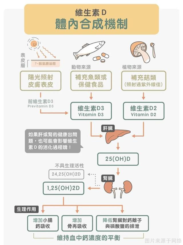 它們都需在肝臟中轉化成骨化二醇,再于腎臟中轉化成骨化三醇,之后才可發揮生物效應。